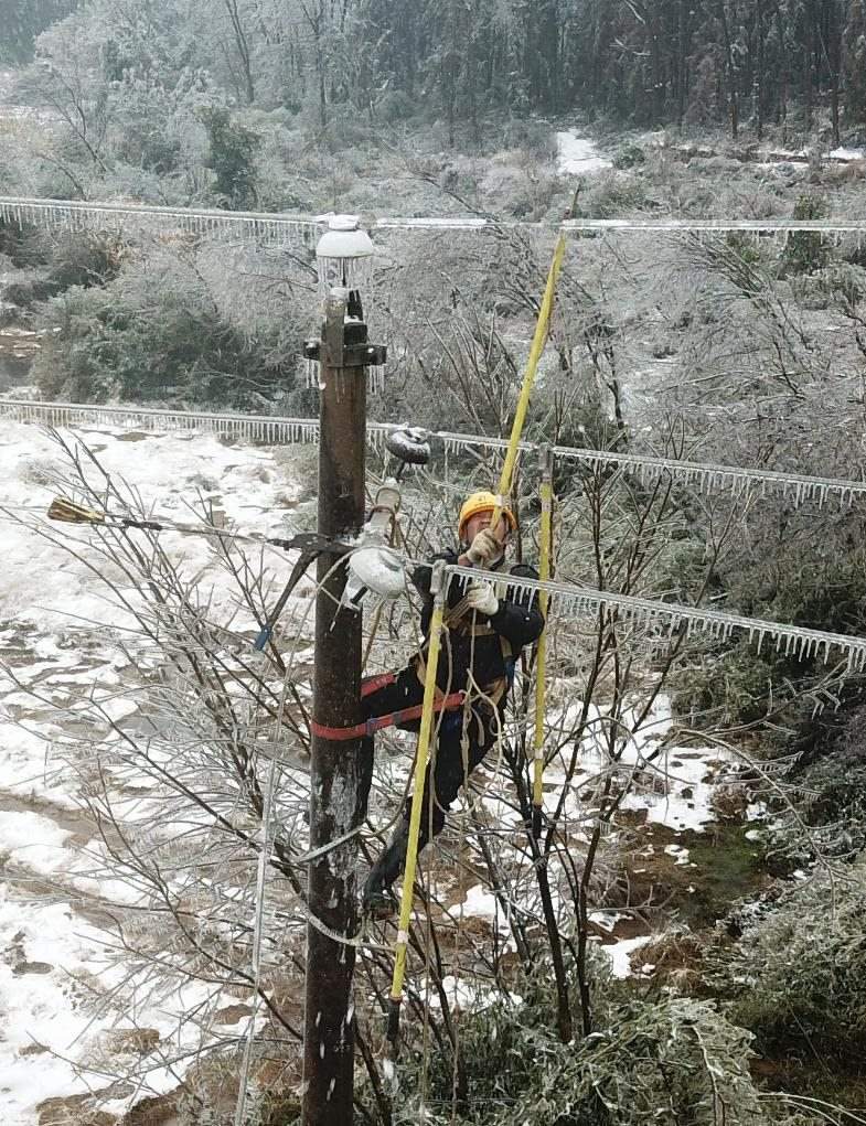 4日深夜,位于武漢市江岸區(qū)花惠社區(qū)門口的樹木覆冰折斷,壓斷了位于樹下的電線桿,造成10千伏三眼橋線故障停電。收到消息后,國網武漢供電公司搶修人員姚志飛和他的同事趕到現場。姚志飛和同事們頂著風雪,熟練地進行著發(fā)電車的接電工作。不一會兒,附近居民的供電恢復正常。此后,經過他們一夜奮戰(zhàn),新的電線桿立起,搶修完成。