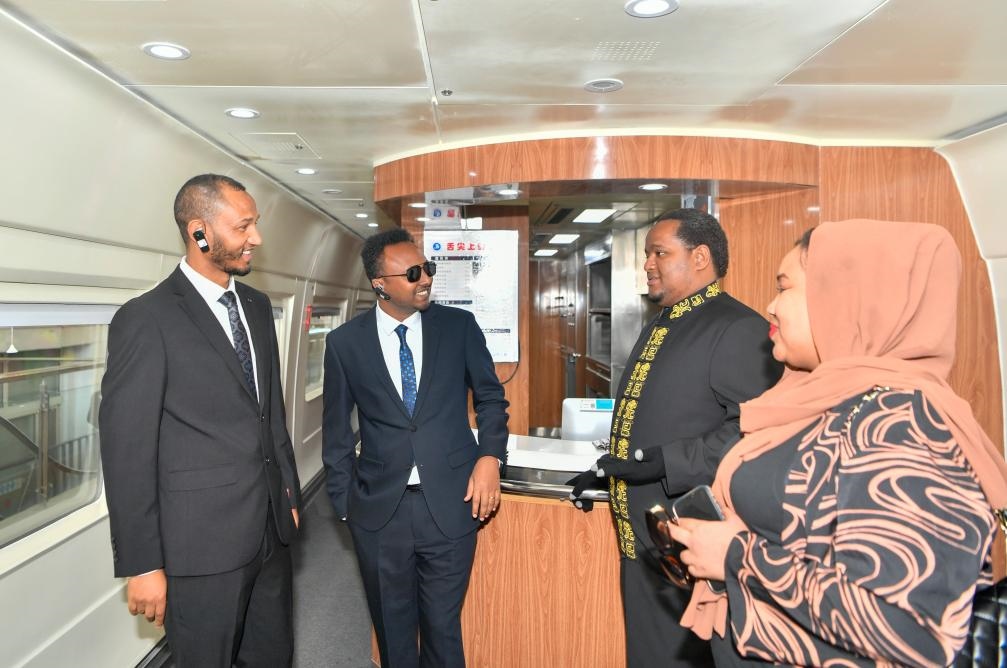 2023年11月7日,首屆亞吉鐵路高層管理人員培訓(xùn)在天津鐵道職業(yè)技術(shù)學(xué)院舉行結(jié)業(yè)儀式。這是結(jié)業(yè)人員在高鐵模擬車(chē)廂內(nèi)交談。