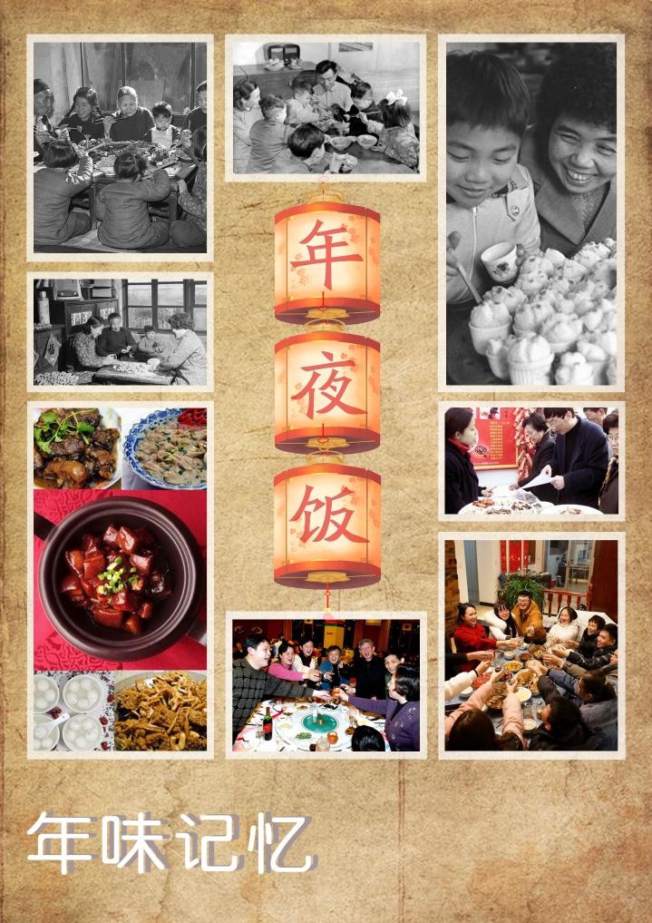 2014年拍攝的拼版照片:“一桌年夜飯”,依次為年糕、發(fā)菜豬手、扁肉燕、長年菜、殺豬菜、餃子、紅燒肉、鴻運(yùn)當(dāng)頭、安豆苗、臭鱖魚、湯圓、四喜烤麩、八寶飯(從左至右、從上至下)。