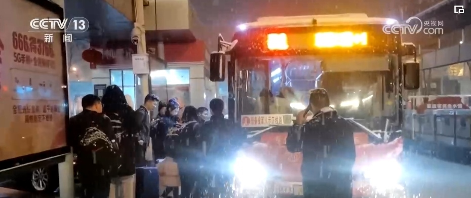 看到一些帶著小孩和老人的乘客沒能擠上車,站在風(fēng)雪中焦急等候,黃勁松和隊(duì)友們走上前,帶著他們前往公交站場(chǎng),提前上車等候發(fā)班。凌晨1時(shí)10分,第二趟加班車從車場(chǎng)出發(fā)了。