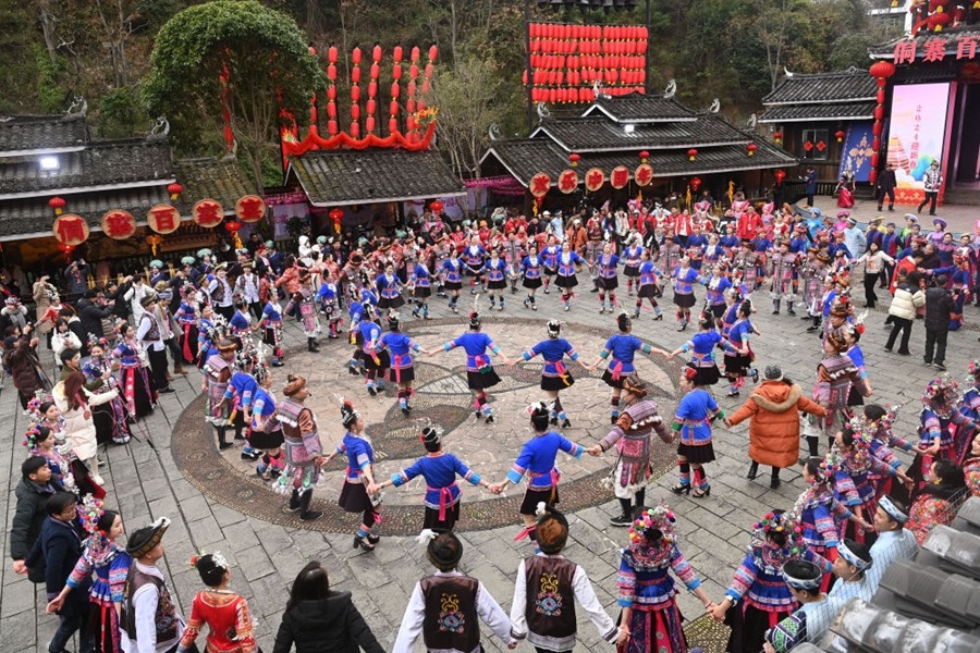 悠揚(yáng)的蘆笙曲調(diào)盡顯歡樂與灑脫,輕快舞步展現(xiàn)著群眾豐收的喜悅……在位于祖國(guó)南疆的廣西柳州三江侗族自治縣程陽八寨景區(qū),“村晚”通過行進(jìn)式演藝、活態(tài)傳承和互動(dòng)體驗(yàn)等方式,讓大家沉浸式感受當(dāng)?shù)匚幕?/p>