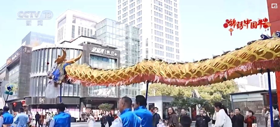 在浙江杭州,一場(chǎng)熱鬧的舞龍巡游活動(dòng)將全城的過年氛圍拉滿。這條50多米長(zhǎng)的“臨安水龍”,來回穿梭于杭州各大商圈,做出“水中戲珠”“戲水搏浪”,盤、滾、游、翻等高難度動(dòng)作。最有特色的,是龍身翻舞時(shí)會(huì)帶動(dòng)藍(lán)綢翻滾,呈現(xiàn)出“金龍騰躍于碧浪中”的壯觀景象。龍身盤旋時(shí),還會(huì)秀一把噴水絕活,寓意著龍年順風(fēng)順?biāo)?br>