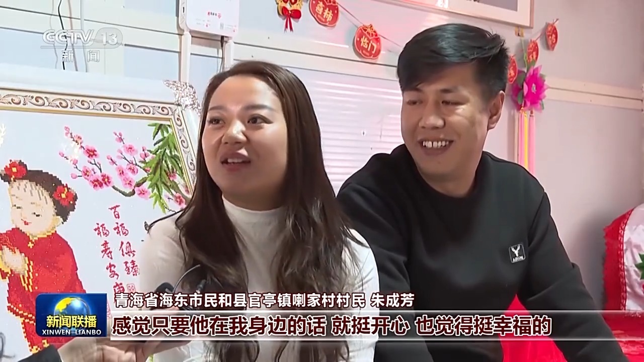 青海省海東市民和縣官亭鎮(zhèn)喇家村村民 朱成芳:感覺只要他在我身邊的話,就挺開心,也覺得挺幸福的。在新的一年里面希望趕緊建好自己的新家園。