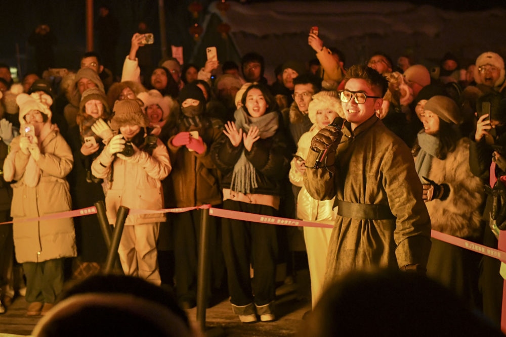 福建游客謝佳欣就是其中之一?!鞍滋煊忻袼妆荣悺⑼砩嫌畜艋鹜頃?,既能感受當?shù)匚幕帜芎吞炷系乇钡娜司墼谝黄鸪?、跳舞,這樣過年我還是第一次,氛圍太難得了?!彼f,原計劃只呆兩天看看雪景,臨時將行程增加到6天。