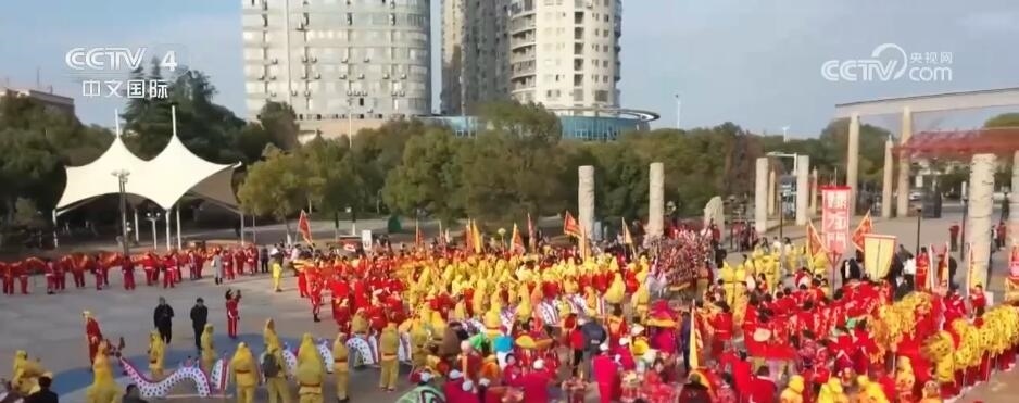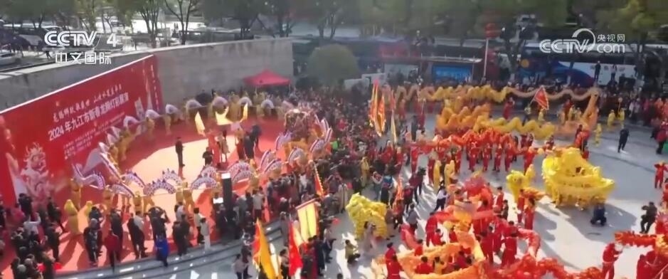 在江西九江的長江國家文化公園城區(qū)段大中路上舉行了龍獅燈彩踩街活動,“巨龍”時而“翱翔騰飛”,時而輾轉(zhuǎn)騰挪,隨行的鼓樂齊鳴,新年火熱的氛圍依然不減。