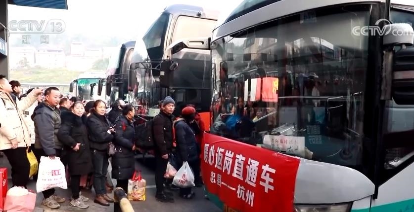 外出務(wù)工人員陳富英接受采訪時表示,這幾天不太好買車票,老家政府給我們安排了返崗專車,讓我們能夠快速抵達工作目的地。