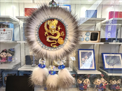 在“十四冬”的主媒體中心,多個玻璃展柜里的漢代陶罐、北魏陶俑、清代簪花木碗等文物,記錄并展現(xiàn)了呼倫貝爾民族交融史。此外,精美的太陽花手工藝品、皮雕畫作、樺樹皮工藝品等非遺作品也吸引了許多人的目光。