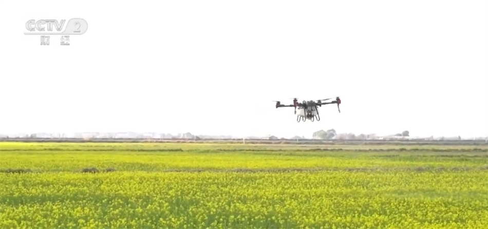 在江西省南昌市新建區(qū)的這個(gè)稻油輪作示范基地,金黃的油菜花競(jìng)相開放?;êI峡?,無(wú)人機(jī)在專業(yè)人員的操控下,均勻地將肥料和農(nóng)藥噴撒至油菜田間,為油菜提供生長(zhǎng)的能量和養(yǎng)分,抑制病菌繁殖,提高油菜結(jié)莢率及產(chǎn)量。