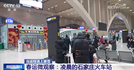 在石家莊火車站,記者看到,雖然已經(jīng)凌晨一點多了,由于列車晚點,車站里仍然有不少旅客,車站方面也增加了人力,做好旅客疏導(dǎo)和服務(wù)保障工作。