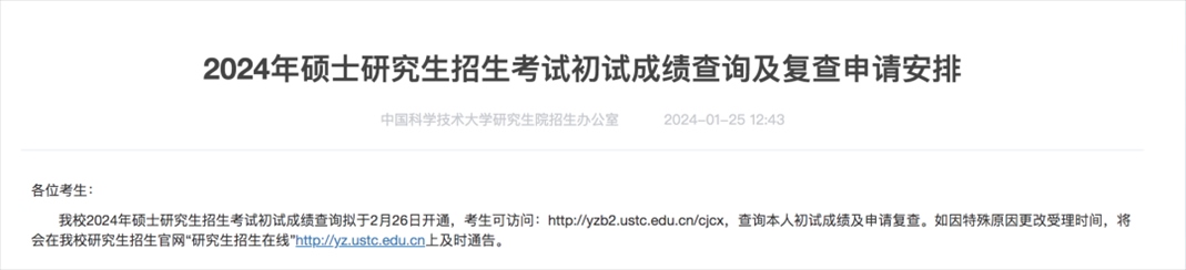 中國(guó)科學(xué)技術(shù)大學(xué)考研初試成績(jī)查詢