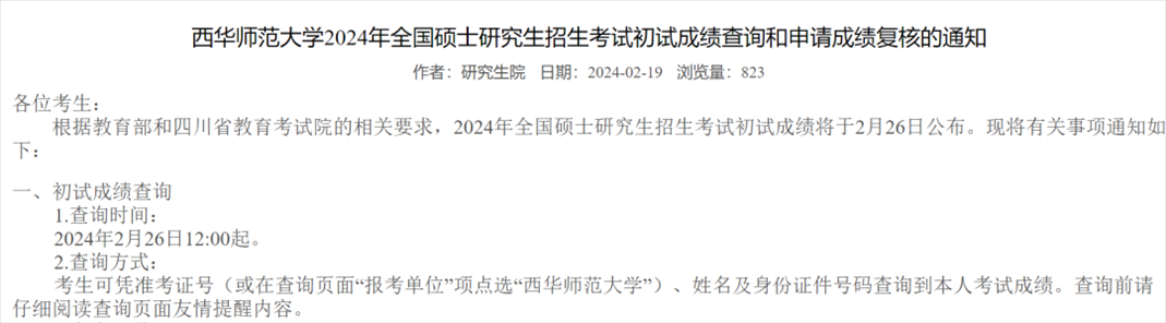 西華師范大學(xué)考研初試成績(jī)