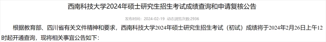 西南科技大學(xué)考研初試成績(jī)