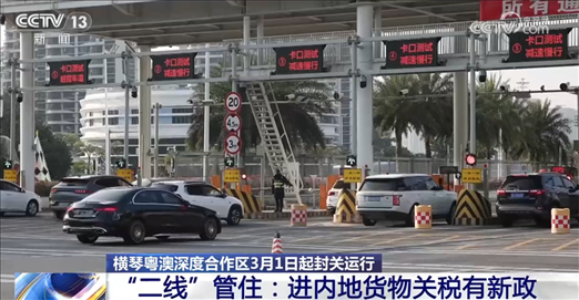 央視網(wǎng)消息:3月1日起,橫琴粵澳深度合作區(qū)將正式封關運行。合作區(qū)實施范圍為橫琴島“一線”和“二線”之間的海關監(jiān)管區(qū)域,總面積約106平方公里。其中,橫琴與澳門特別行政區(qū)之間設為“一線”;橫琴與中華人民共和國關境內(nèi)其他地區(qū)之間設為“二線”。