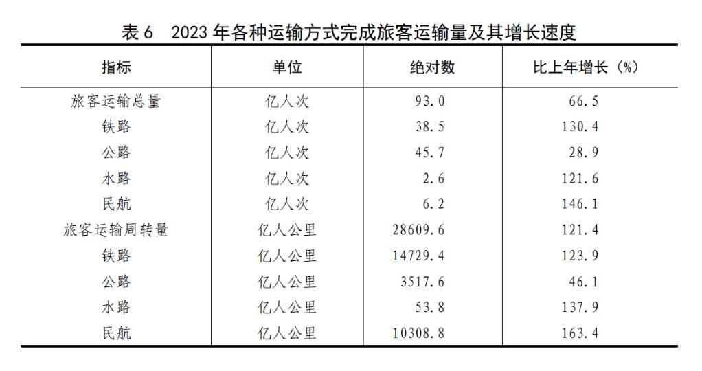 全年旅客運(yùn)輸總量93億人次,比上年增長66.5%。旅客運(yùn)輸周轉(zhuǎn)量28610億人公里,增長121.4%。
