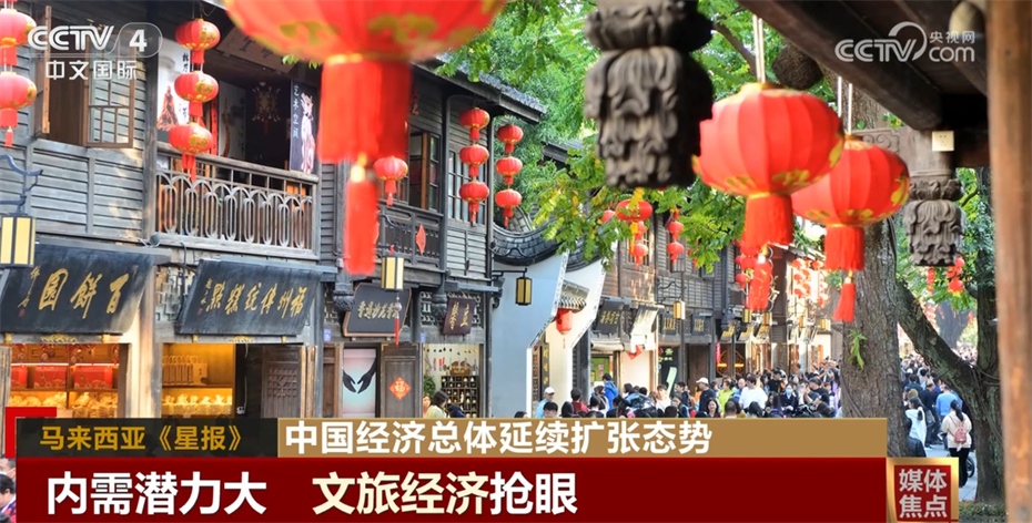 我們再來看馬來西亞《星報》的報道——中國內(nèi)需潛力大,文旅經(jīng)濟(jì)搶眼。中國內(nèi)需市場潛力巨大,旅游業(yè)、服務(wù)業(yè)消費(fèi)活力持續(xù)增長,其中文旅經(jīng)濟(jì)發(fā)展搶眼。中國文旅業(yè)持續(xù)創(chuàng)新商業(yè)模式,憑借特色化、智能化的旅游產(chǎn)品和服務(wù)帶給游客良好體驗(yàn)。以大數(shù)據(jù)為核心的互聯(lián)網(wǎng)生態(tài)體系,融合應(yīng)用AR、VR新技術(shù),游客只需通過手機(jī)掃一掃就可獲得“導(dǎo)游、導(dǎo)覽、導(dǎo)航、導(dǎo)購”一體化的多功能綜合應(yīng)用,方便快捷。
