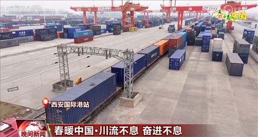 忙碌起來的不只是港口,西安國際港站汽笛聲聲、班列轟鳴,龍門吊正加緊作業(yè)。這輛滿載光伏設(shè)備和新能源汽車等貨物的中歐班列,預(yù)計9天后將抵達目的地——烏茲別克斯坦塔什干。在這里,平均每1小時40分鐘就有一列中歐班列出發(fā)或到達。“一帶一路”建設(shè)讓西部成為開放前沿,開放是一種理念、一條路,更是一種胸襟。?