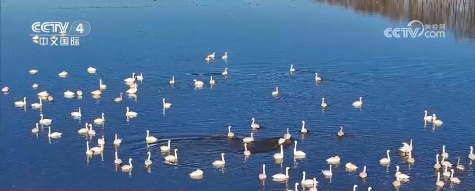 大批國(guó)家二級(jí)重點(diǎn)保護(hù)野生動(dòng)物大天鵝在遷徙途中飛臨河北唐山市曹妃甸區(qū),它們?cè)跐竦亍⑥r(nóng)田等水域覓食、嬉戲,悠閑地享受著這份春日美好。曹妃甸是東亞至澳大利西亞候鳥(niǎo)遷徙路線重要的停歇地,每年春秋兩季到此逗留的鳥(niǎo)類(lèi)達(dá)數(shù)百萬(wàn)只,為曹妃甸增添了自然生態(tài)之美。