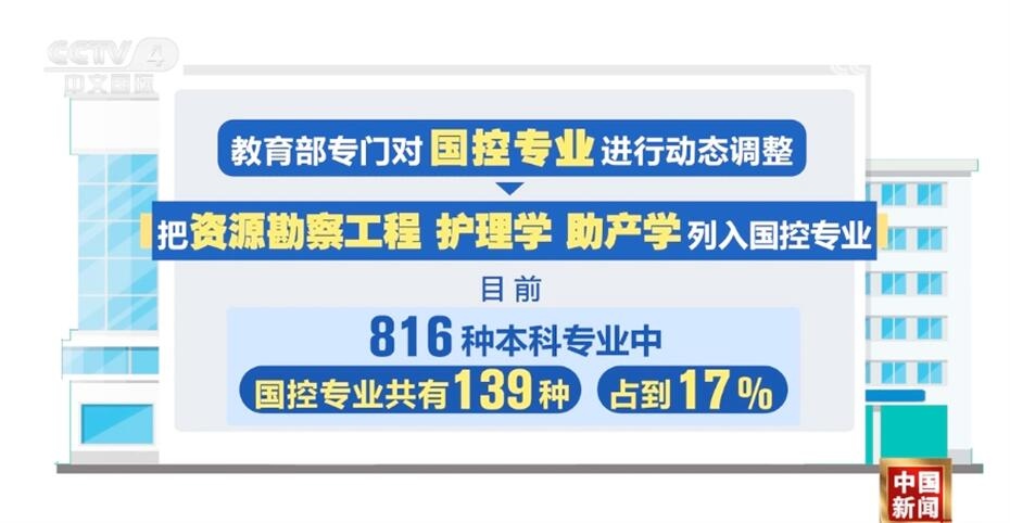 此次教育部專門對(duì)國(guó)控專業(yè)進(jìn)行了動(dòng)態(tài)調(diào)整,把資源勘察工程、護(hù)理學(xué)、助產(chǎn)學(xué)列入了國(guó)控專業(yè)。目前,816種本科專業(yè)中,國(guó)控專業(yè)共有139種,占到17%。未來,國(guó)控專業(yè)范圍還將進(jìn)行“有進(jìn)有出”的動(dòng)態(tài)調(diào)整。