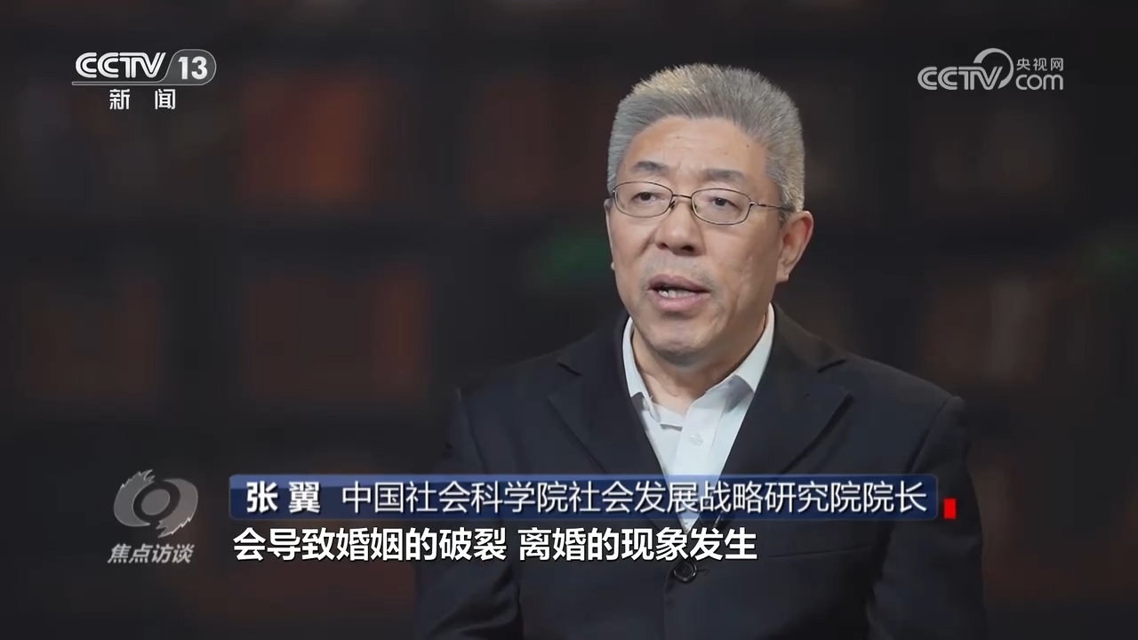中國社科院社會(huì)發(fā)展戰(zhàn)略研究院院長張翼:“增加夫妻雙方的矛盾以后,會(huì)導(dǎo)致婚姻破裂、離婚現(xiàn)象發(fā)生,導(dǎo)致離婚率居高不下;第二,往往導(dǎo)致兩個(gè)親家之間互不往來,原來存在的家庭網(wǎng)斷裂了。”?
