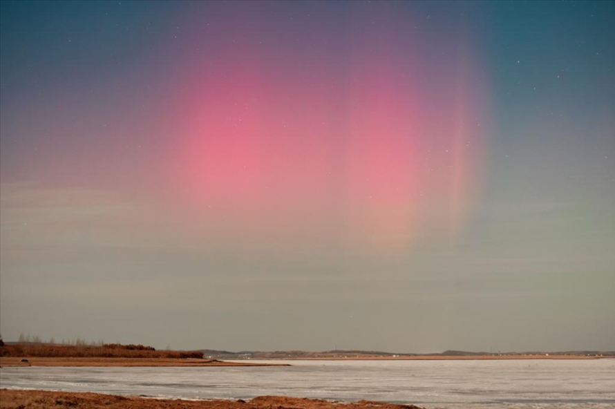 25日,受地磁暴活動(dòng)影響,黑龍江省齊齊哈爾訥河市出現(xiàn)“腮紅”式極光,場(chǎng)景震撼。目前,地磁暴活動(dòng)已開始逐漸減弱。