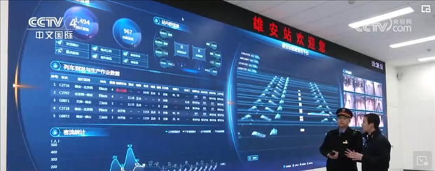 楊景瑞介紹,雄安站跟以前他工作過的其他高鐵站相比,有很多令人眼前一亮的特點。比如車站頂部鋪設了光伏板,能自己發(fā)電。同時,這還是一座智能車站,擁有自己的“智慧大腦”。