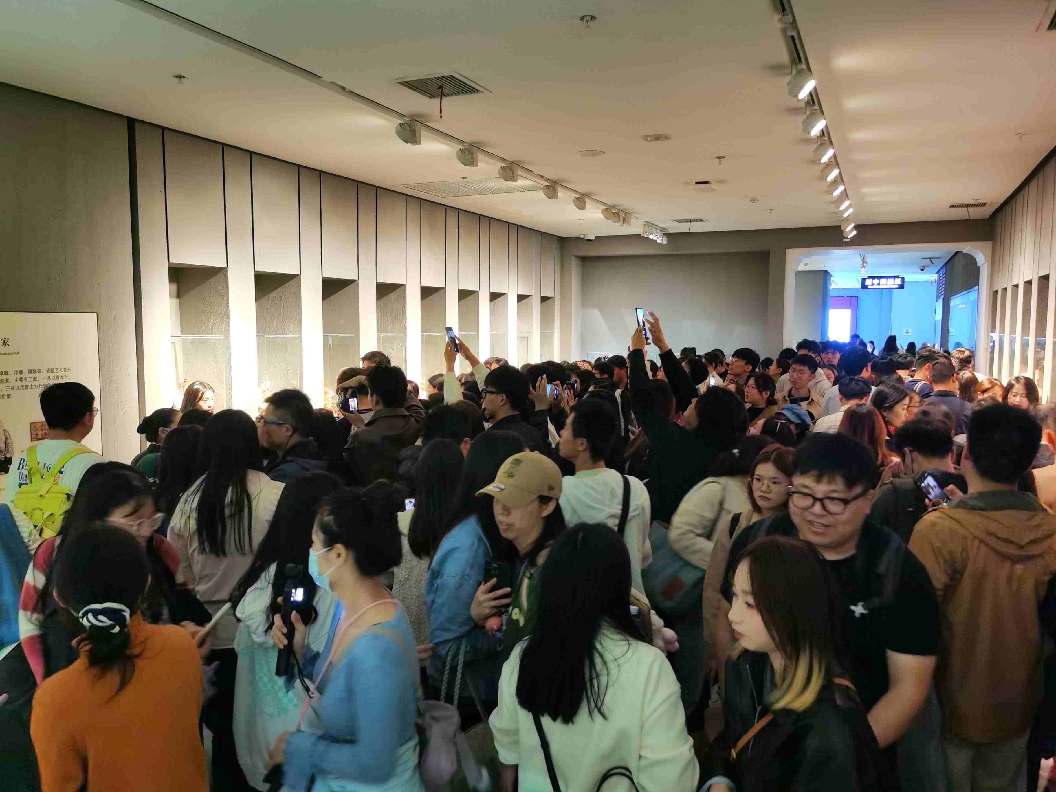 張女士提供的照片顯示,4月5日位于景德鎮(zhèn)的中國陶瓷博物館人流密集,在網(wǎng)紅展品“無語羅漢”陶瓷雕塑前拍照“打卡”的游客摩肩接踵。
