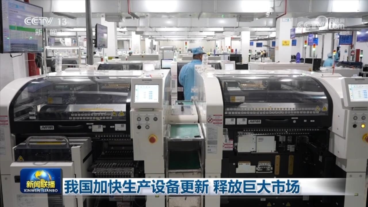 央視網(wǎng)消息(新聞聯(lián)播):我國(guó)推動(dòng)大規(guī)模設(shè)備更新行動(dòng)方案出臺(tái)以來(lái),全國(guó)各地加快布局生產(chǎn)設(shè)備更新?lián)Q代,提升產(chǎn)能和降低能耗,釋放巨大市場(chǎng)空間。