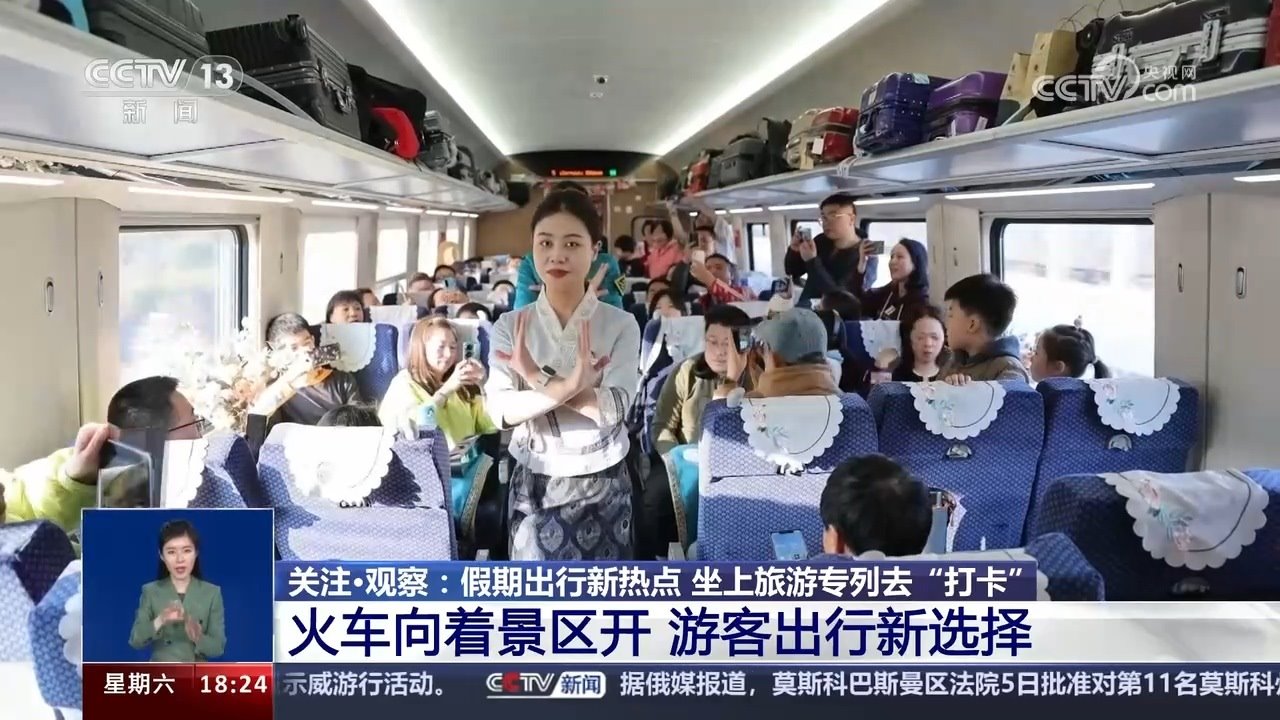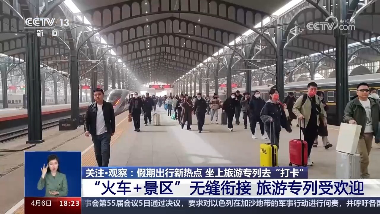 央視網(wǎng)消息:清明春花放,踏青好時(shí)節(jié)。坐著火車去旅行,縱跨千山,橫飛萬水,用速度與激情串聯(lián)美景。今年清明假期第一天也就是4月4日,全國鐵路發(fā)送旅客1853.6萬人次,創(chuàng)今年以來單日旅客發(fā)送量新高。以網(wǎng)紅城市、網(wǎng)紅景區(qū)為目的地的客流增幅明顯,各地增開的臨客列車也瞄準(zhǔn)了游客“打卡地”。坐上旅游專列去旅行,可以給移步換景的美好出游心愿帶來多少種可能呢?進(jìn)入今天的關(guān)注觀察。