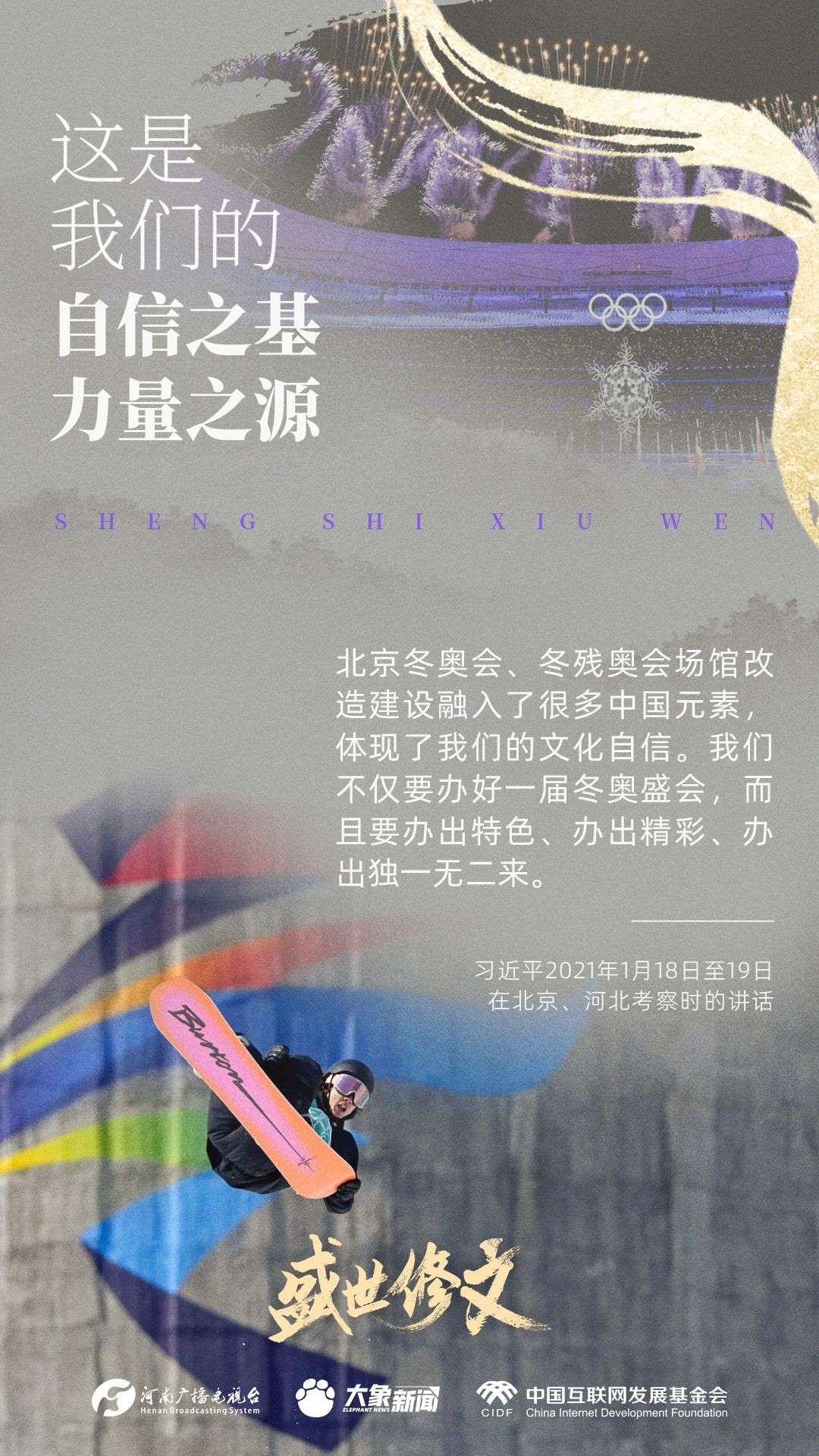 習(xí)近平總書(shū)記2022年4月8日在北京冬奧會(huì)、冬殘奧會(huì)總結(jié)表彰大會(huì)上的重要講話指出:要充分挖掘利用北京冬奧文化資源,堅(jiān)定文化自信,更加自信從容傳播中國(guó)聲音、講好中國(guó)故事。