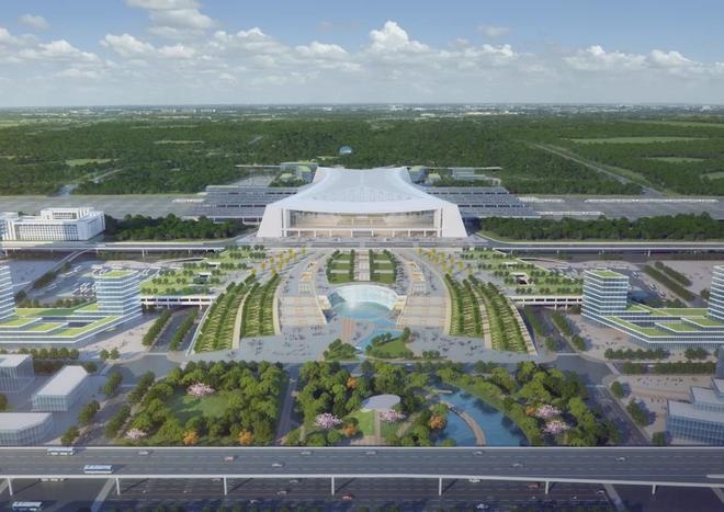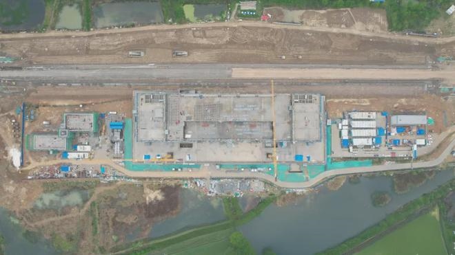 車站采用鋼結(jié)構(gòu)加鋁鎂錳板金屬屋面,整體空間造型提煉和吸取了明代傳統(tǒng)建筑造型特點(diǎn),結(jié)合傳統(tǒng)與現(xiàn)代的設(shè)計(jì)手法,打造具有“風(fēng)水寶地,祥瑞所鐘”設(shè)計(jì)理念的地域性地標(biāo)建筑。目前,站房主體結(jié)構(gòu)已施工完畢,正在進(jìn)行屋面鋼桁架施工。