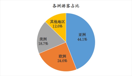 一、近程市場(chǎng)恢復(fù)良好。港澳臺(tái)地區(qū)游客恢復(fù)速度較快,合計(jì)為9.5萬(wàn)人次,恢復(fù)到2019年的80.1%。游客占比方面,亞洲游客(不包括港澳臺(tái)地區(qū))占比為44.1%,較2019年提升7.2個(gè)百分點(diǎn),東南亞地區(qū)游客恢復(fù)情況最好,其中主要客源國(guó)為馬來西亞、泰國(guó)、新加坡。