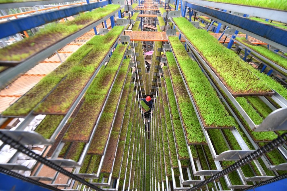 2024年3月21日,村民在湖南省衡山縣白果鎮(zhèn)國豐農(nóng)機(jī)服務(wù)專業(yè)合作社育秧。新華社記者 趙眾志 攝