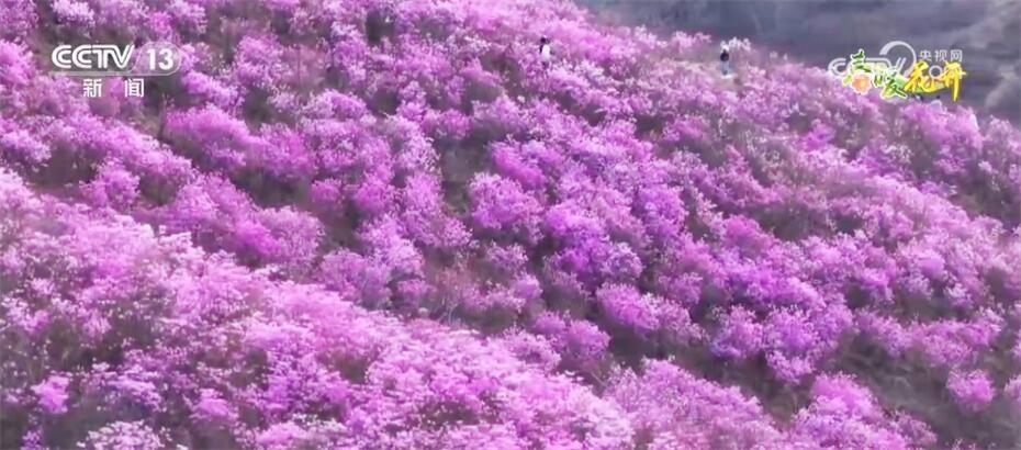 這里是遼寧省鞍山市岫巖滿族自治縣的黃嶺村,映山紅迎春綻放,粉紅色的花海綿延近十里,在山巒中鋪開,燦若云霞。一團團、一簇簇色彩艷麗的花朵,與高山叢林交相輝映,蔚為壯觀。各方游客紛至沓來,感受春日浪漫、定格美好瞬間。預計這里的花期將持續(xù)到4月底。