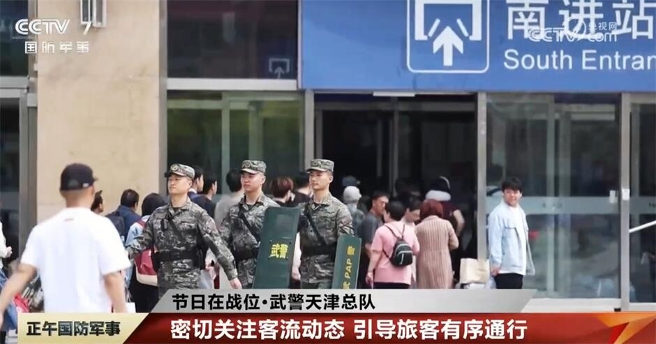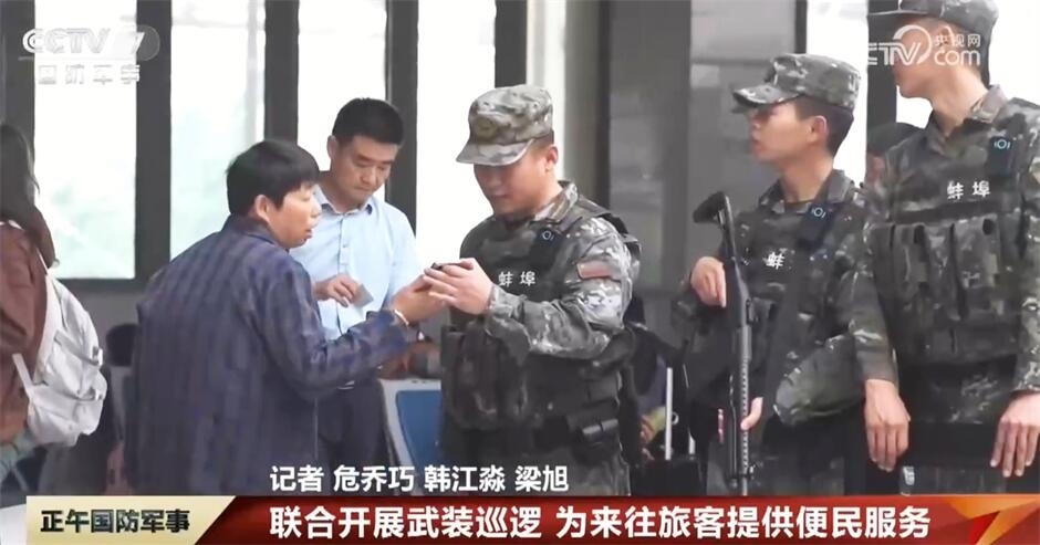 在安徽蚌埠火車站,武警官兵與公安特警聯(lián)合開展武裝巡邏,主動(dòng)加大對(duì)重點(diǎn)區(qū)域的實(shí)時(shí)監(jiān)控和巡邏力度,在維護(hù)秩序的同時(shí),官兵還耐心為廣大旅客答疑解惑,提供便民服務(wù)。