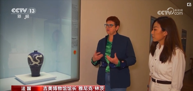 吉美博物館館長(zhǎng)林茨女士被中國(guó)文化深深吸引。當(dāng)問(wèn)到在博物館里上萬(wàn)件藏品中,她最喜歡哪一件時(shí),她幾乎沒(méi)有遲疑地把我們帶到中國(guó)瓷瓶前。