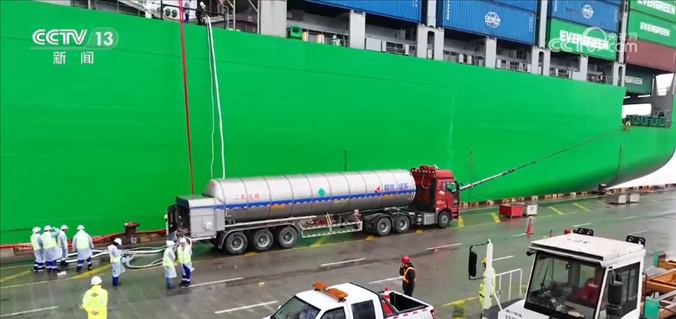 5月10日,中國船舶集團(tuán)自研的全球首套全流程船舶碳捕集系統(tǒng)所生產(chǎn)的第一罐二氧化碳產(chǎn)品正式交付。