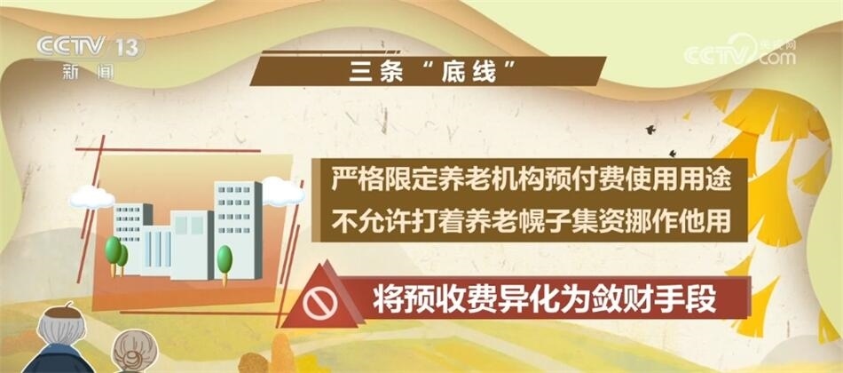 發(fā)布會上,民政部相關(guān)負(fù)責(zé)人介紹,《意見》還明確了三條安全“底線”:第一條是嚴(yán)禁養(yǎng)老機(jī)構(gòu)超過床位供給能力“一床多賣”;第二條是嚴(yán)格限定養(yǎng)老機(jī)構(gòu)預(yù)付費使用用途,不允許打著養(yǎng)老幌子集資挪作他用,將預(yù)收費異化為斂財手段;第三條是明確不得以承諾還本付息、給予其他投資回報等方式,誘導(dǎo)老年人及家屬交費,這是典型的非法集資行為。