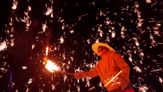 “長(zhǎng)城鐵花”是長(zhǎng)城腳下的人們?cè)谵r(nóng)閑時(shí)表演來(lái)祭祀、娛樂(lè)、祈求風(fēng)調(diào)雨順、生活美滿(mǎn)的一種民間文藝活動(dòng)。當(dāng)鐵水溫度達(dá)到1600至1800攝氏度時(shí),用木勺擊打鐵水,鐵花四濺,猶如天女散花,甚是絢麗壯觀。