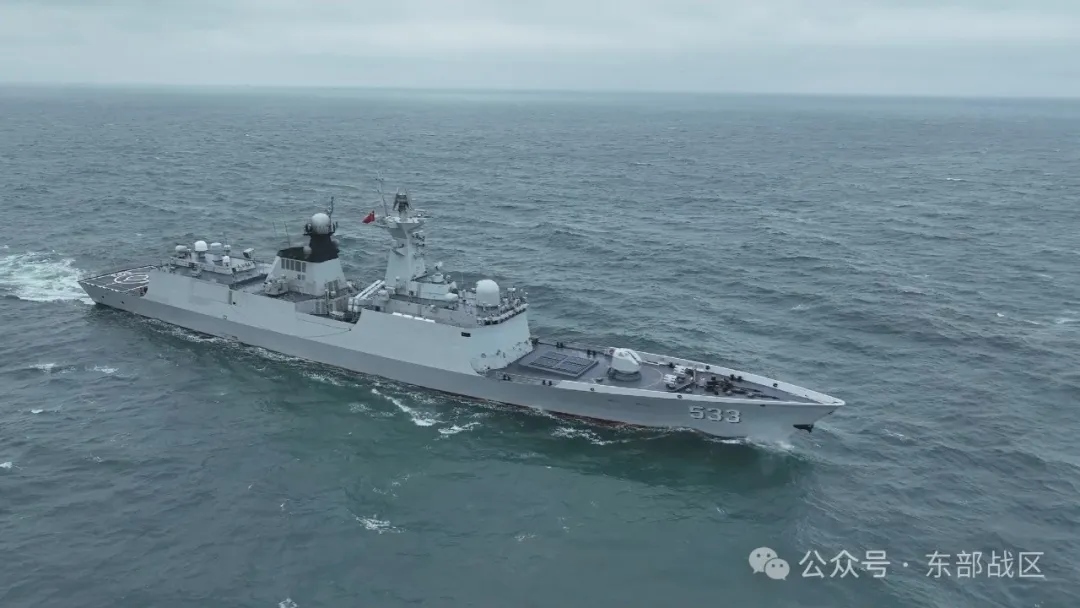 ▲我護(hù)導(dǎo)編隊(duì)與東引島同框。