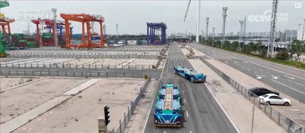 在堆場和貨輪之間有92個承擔運輸任務(wù)的智能機器人,它們通過激光雷達、5G技術(shù),轉(zhuǎn)彎、減速、避讓,每跑一趟與周邊設(shè)備會進行上百次信息交互。