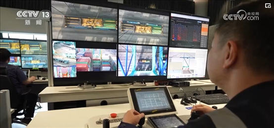 在天津港北疆港區(qū)智能化集裝箱碼頭,隨著貨輪的靠港,長達15.6米的無人駕駛運輸機器人就忙碌起來。此時,在智控中心里裝卸操控、車輛調(diào)度,一個個指令通過鍵盤、按鈕精準傳達到碼頭。
