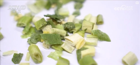 香蔥被運輸?shù)疆?dāng)?shù)氐募庸S后,經(jīng)過洗、理、切、分揀裝盤,然后就開始了高科技的“蛻變”之旅。工人先把香蔥放入冷庫冷凍數(shù)小時,然后立即抽真空“升華”干燥,經(jīng)過48小時左右的一系列工序后,一棵香蔥就變成了脫水蔬菜。留學(xué)回國創(chuàng)業(yè)的王一盛介紹,與過去使用的熱風(fēng)干燥技術(shù)相比,這種新技術(shù)不僅讓垛田香蔥最大程度鎖鮮,價格也比過去增加了五六倍。