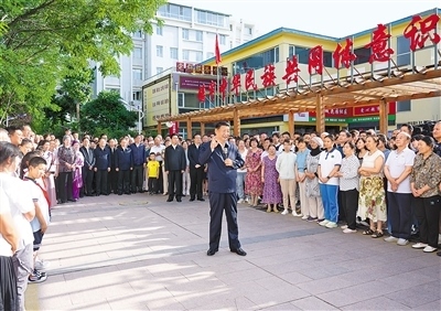 傍晚時分,社區(qū)廣場十分熱鬧,居民們看見總書記來了,紛紛圍攏過來,熱烈鼓掌歡迎。習(xí)近平親切地對大家說,時隔4年,我再次來寧夏看望各族干部群眾,見到大家非常高興!中華民族是一個大家庭,各族人民要像石榴籽一樣緊緊抱在一起。要不斷鑄牢中華民族共同體意識,把各族人民的心緊緊連在一起,把各方面的力量廣泛凝聚到一起,共同推進中國式現(xiàn)代化,共襄中華民族偉大復(fù)興的盛舉。