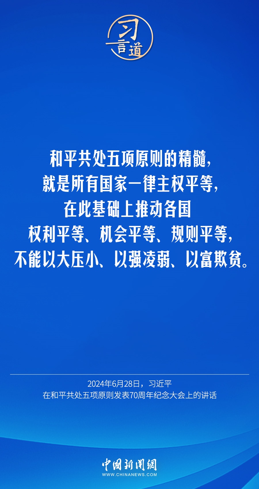 6月28日,國家主席習近平在北京人民大會堂出席和平共處五項原則發(fā)表70周年紀念大會并發(fā)表重要講話。習近平指出——