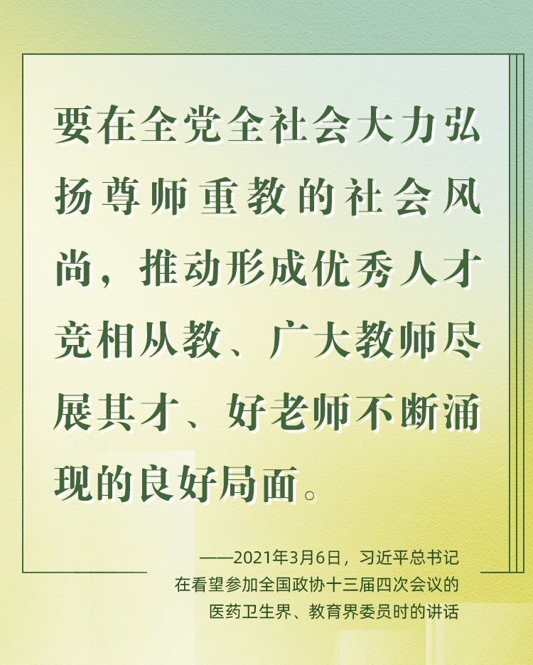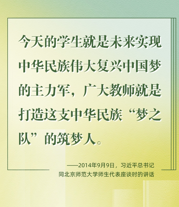 教師是立教之本、興教之源。2024年9月10日,是我國(guó)第40個(gè)教師節(jié)。黨的十八大以來(lái),習(xí)近平總書(shū)記始終高度重視教師隊(duì)伍建設(shè),立足實(shí)現(xiàn)中華民族偉大復(fù)興中國(guó)夢(mèng)、打造中華民族“夢(mèng)之隊(duì)”筑夢(mèng)人的特殊歷史使命,對(duì)教師相繼提出了“四有好老師”“四個(gè)引路人”“四個(gè)相統(tǒng)一”“大先生”等殷切期望和明確要求。
