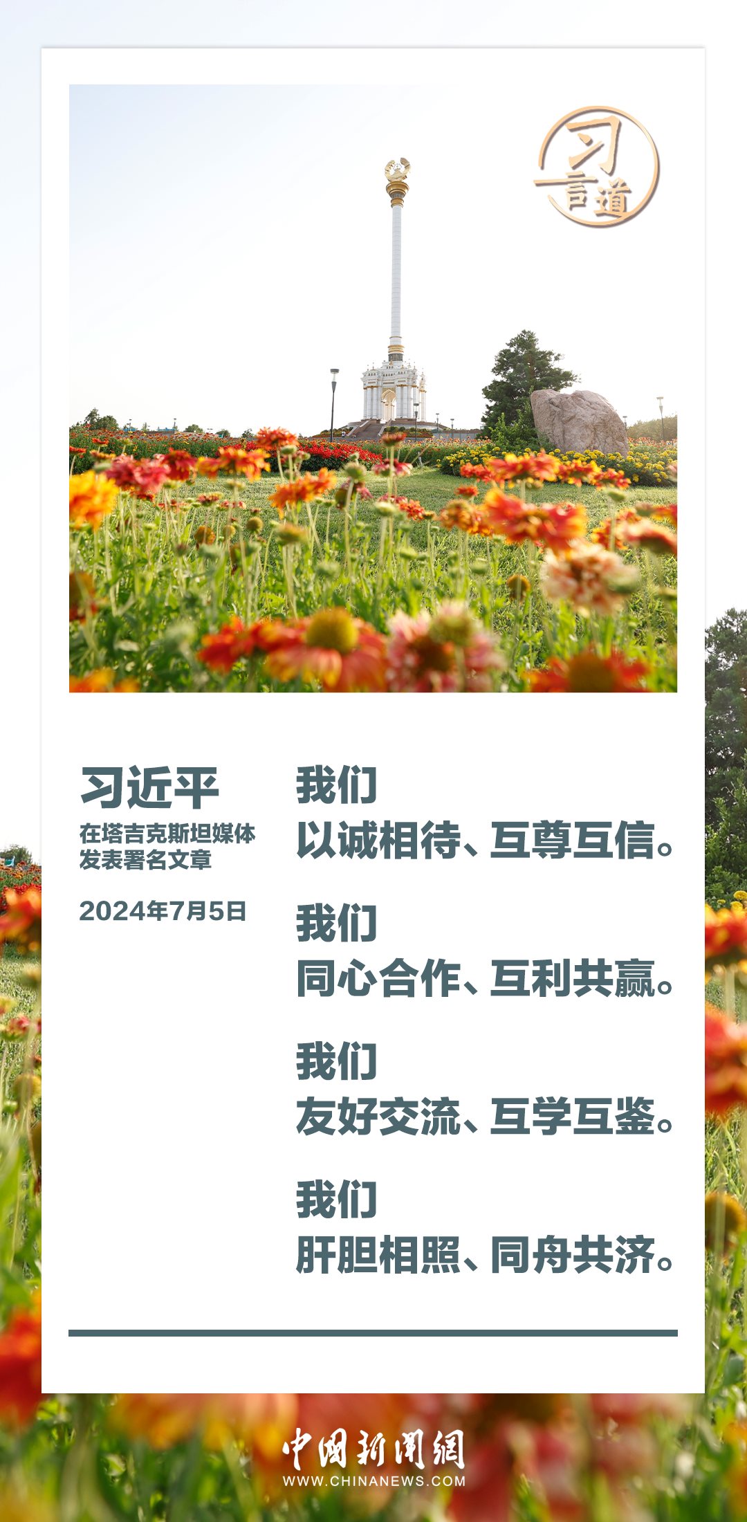 7月5日,在對塔吉克斯坦進行國事訪問之際,國家主席習近平在塔吉克斯坦《人民報》和“霍瓦爾”國家通訊社發(fā)表題為《共創(chuàng)中塔關系美好明天》的署名文章。習近平指出——