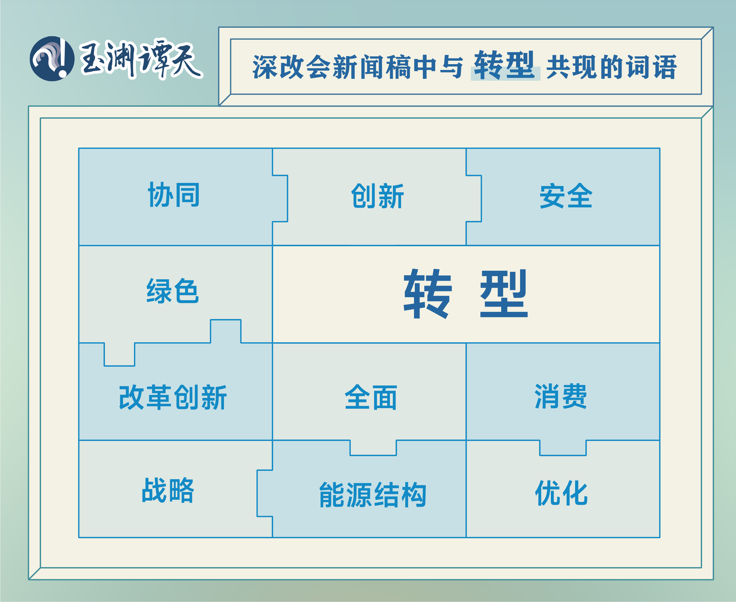 深改會的新聞稿中,伴隨“綠色轉(zhuǎn)型”出現(xiàn)的,還有一連串“轉(zhuǎn)型”——全面轉(zhuǎn)型、協(xié)同轉(zhuǎn)型、創(chuàng)新轉(zhuǎn)型、安全轉(zhuǎn)型;同時還涉及了支撐綠色轉(zhuǎn)型的“消費轉(zhuǎn)型”,以及財稅、金融、投資、價格政策和相關(guān)市場化機制等政策體系的健全。