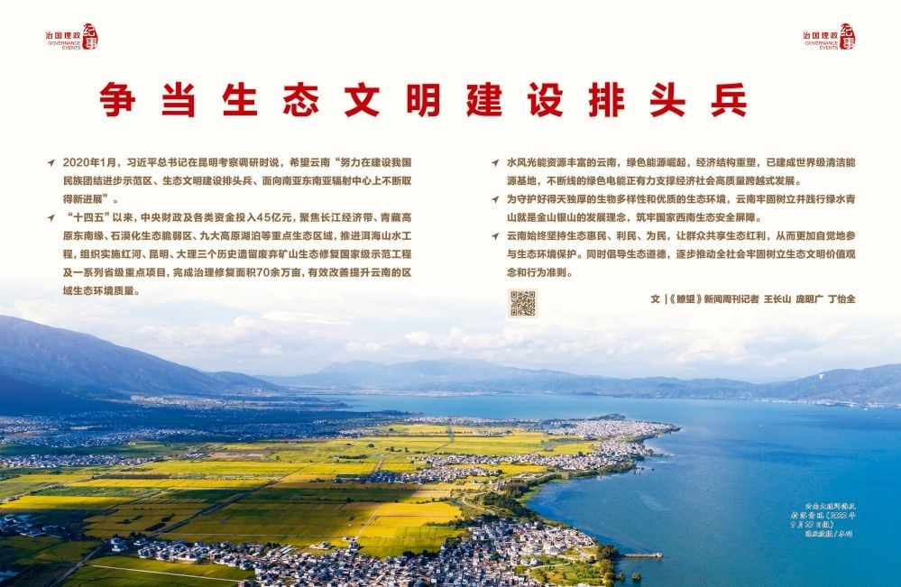 放眼云嶺大地,云南已累計完成生態(tài)文明體制改革事項170余項,形成生態(tài)文明制度建設(shè)的“四梁八柱”,基本構(gòu)建起生態(tài)文明建設(shè)總體制度。云南正馳而不息加強生態(tài)環(huán)境保護,以時不我待的緊迫感和責任感,推動在綠色低碳循環(huán)發(fā)展、生態(tài)安全體系、生態(tài)文化體系方面取得更大進展、更大突破。