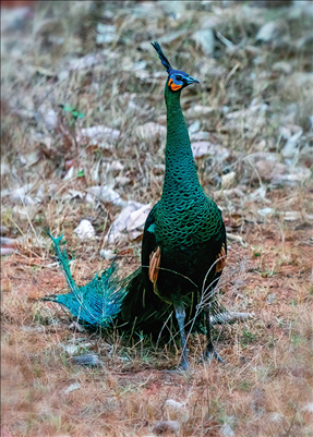 云南楚雄雙柏縣恐龍河自然保護區(qū)的綠孔雀(2023年4月20日攝)胡超攝/本刊