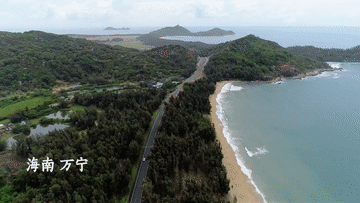 海南島東南角,驅(qū)車從萬(wàn)寧小海到石梅灣,約40公里的濱海風(fēng)光一覽無(wú)余。清退養(yǎng)殖池塘,補(bǔ)種生態(tài)林木,曾經(jīng)臟亂破敗的岸灘,如今成了當(dāng)?shù)刈蠲篮0毒€。